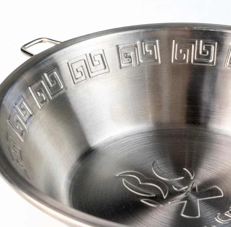 ラーメンどんぶりでお馴染みの『雷紋』をあしらった大容量シェラカップです。