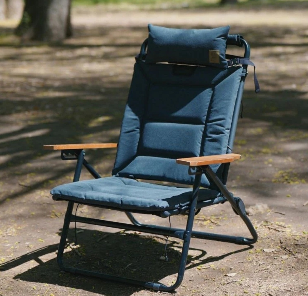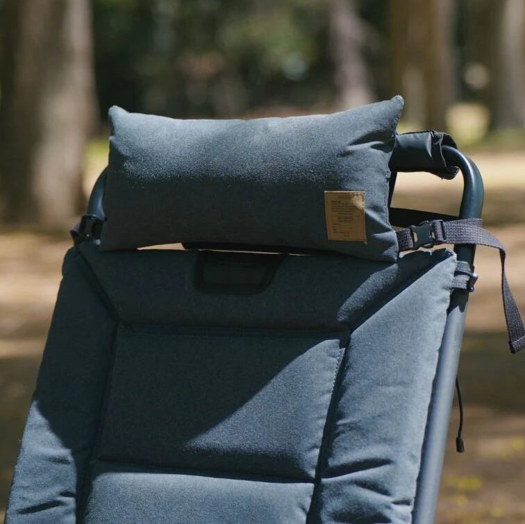 AS2OVのローバーチェアのネッククッションとしてはもちろん、両サイドのベルトで長さを調節することで他のチェアやコットのに枕として取り付けることも可能です。
