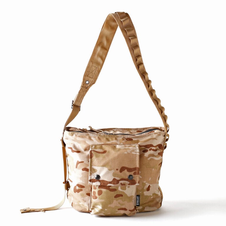 ARMY SHOULDER同様にショルダーストラップはバレットホルダー状のテープを装飾し片手で伸縮させることが出来ます。