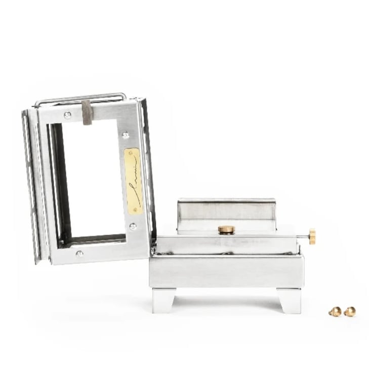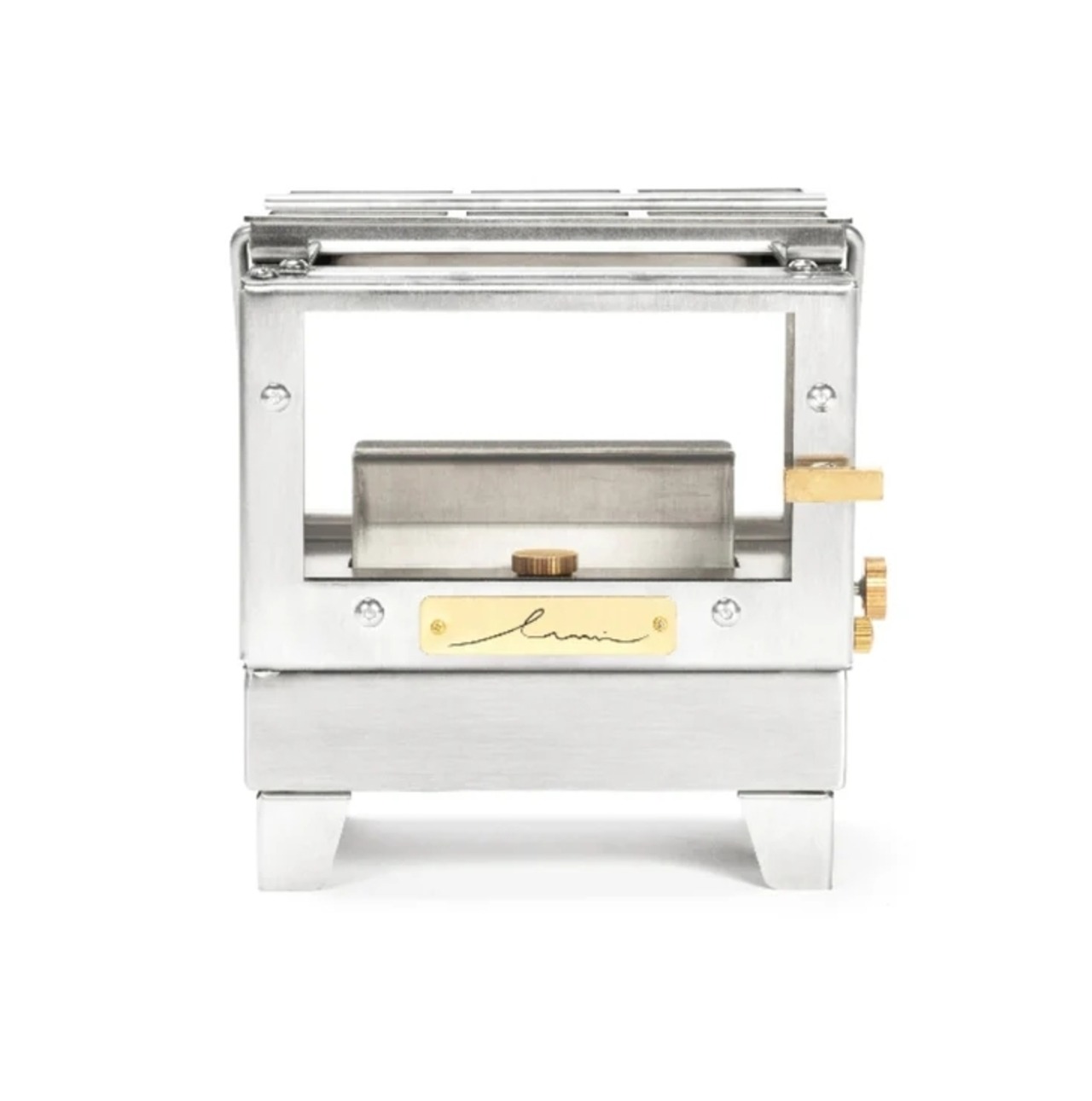 本体には重厚感のあるステンレスを採用し、取っ手やロゴプレートには真鍮を組み合わせることで、使うほどに深みが増す表情を楽しめます。