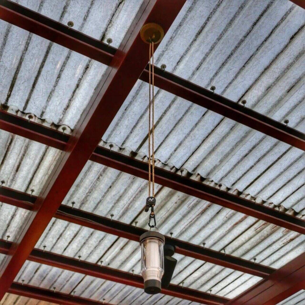 413kgの耐荷重がある反射材入りコードの両端にカラビナがついており、ロゴのボタンを押していただくことで、簡単に低くも高くもしていただけます!