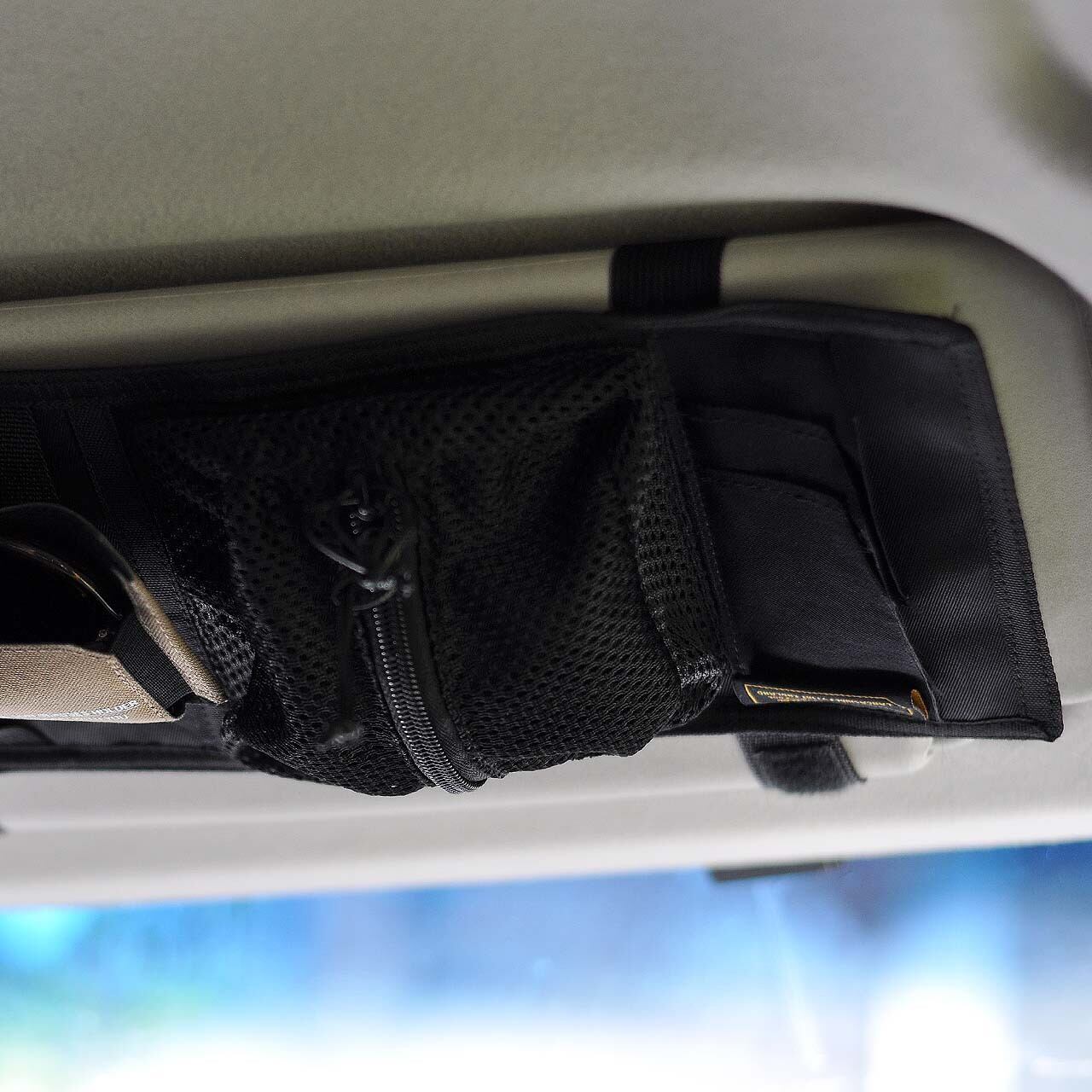 車のサンバイザーに取り付ける収納オーガナイザー。