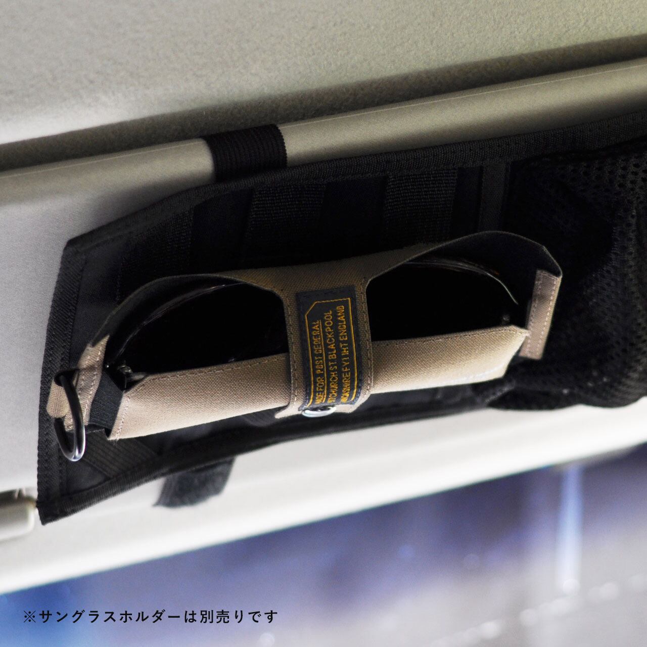 また、ウェビングテープにはサングラスを挟んで収納することが可能です。