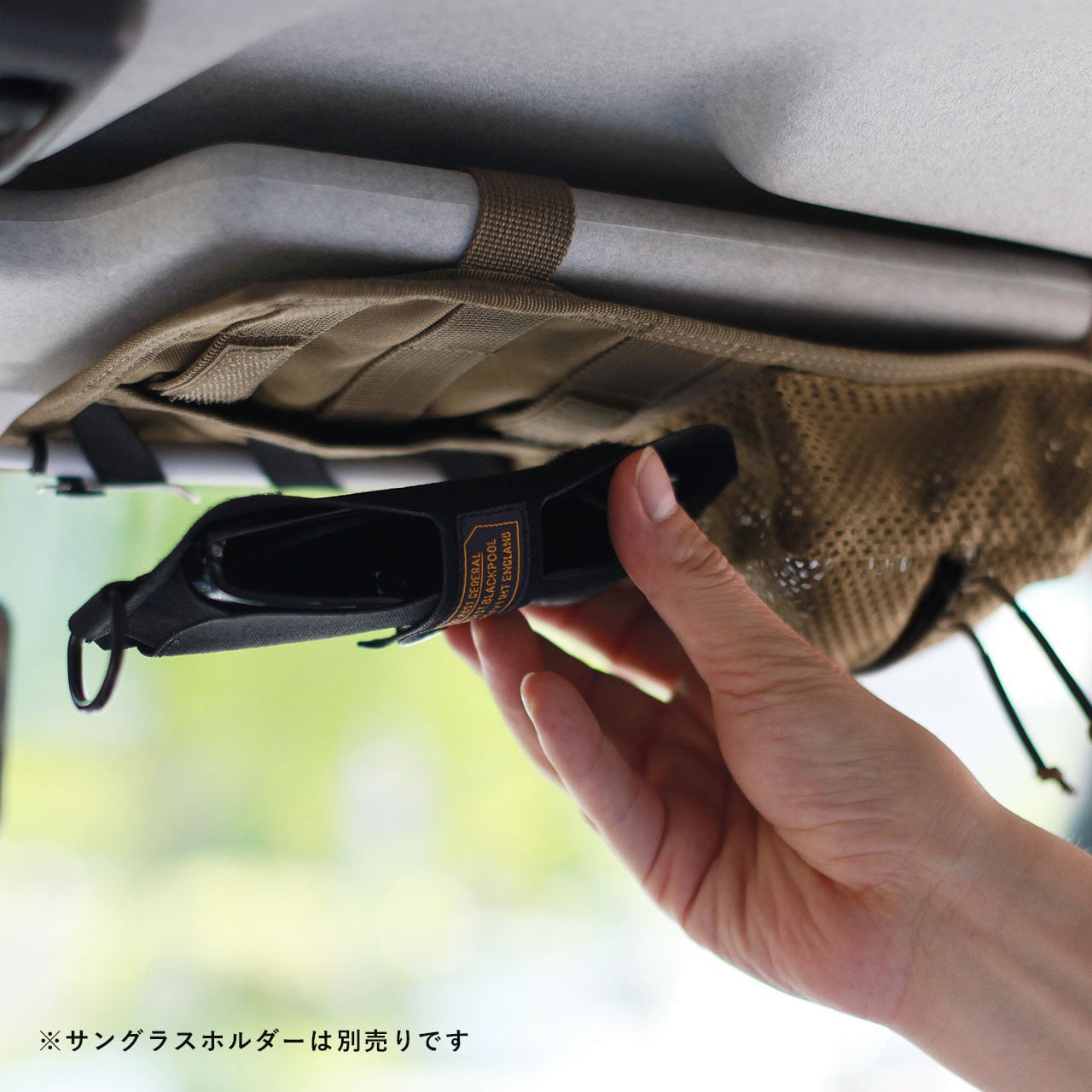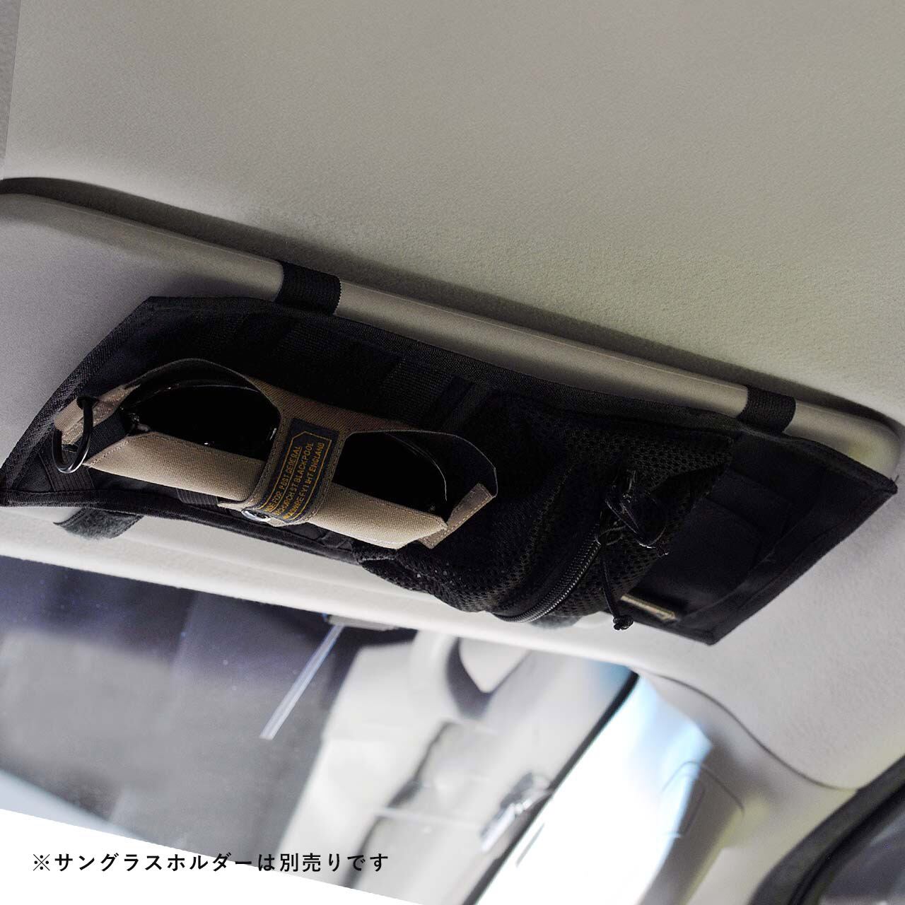 さらに、別売りのテープサングラスホルダーを追加で取り付けることで、よりスタイリッシュにサングラスを収納できる多機能なオーガナイザーです。