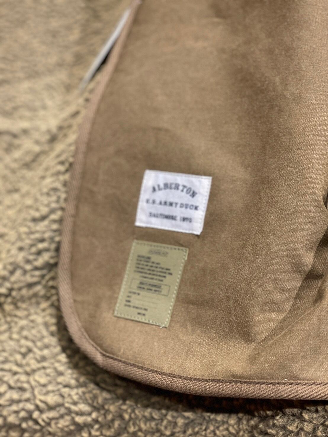 表には、タテ糸にコットン、ヨコ糸にモダクリル繊維のカネカロンProtex を入れ織り込んだ10 OZ アーミーダックを 使用しています。アクリル系合成繊維カネカロン ® は自己消火性を有した難燃繊維素材なので、燃えにくい特性を生かして難燃作業服用・ホームテキスタイル用素材などにも使われています。