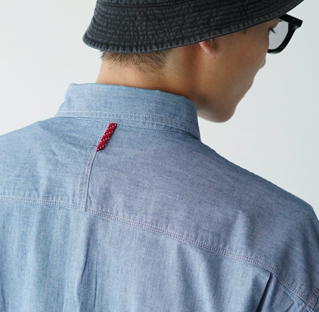 カイハラデニムのオリジナル素材を使った燃えにくいシャンブレーを採用し、焚き火シーンにも最適です。