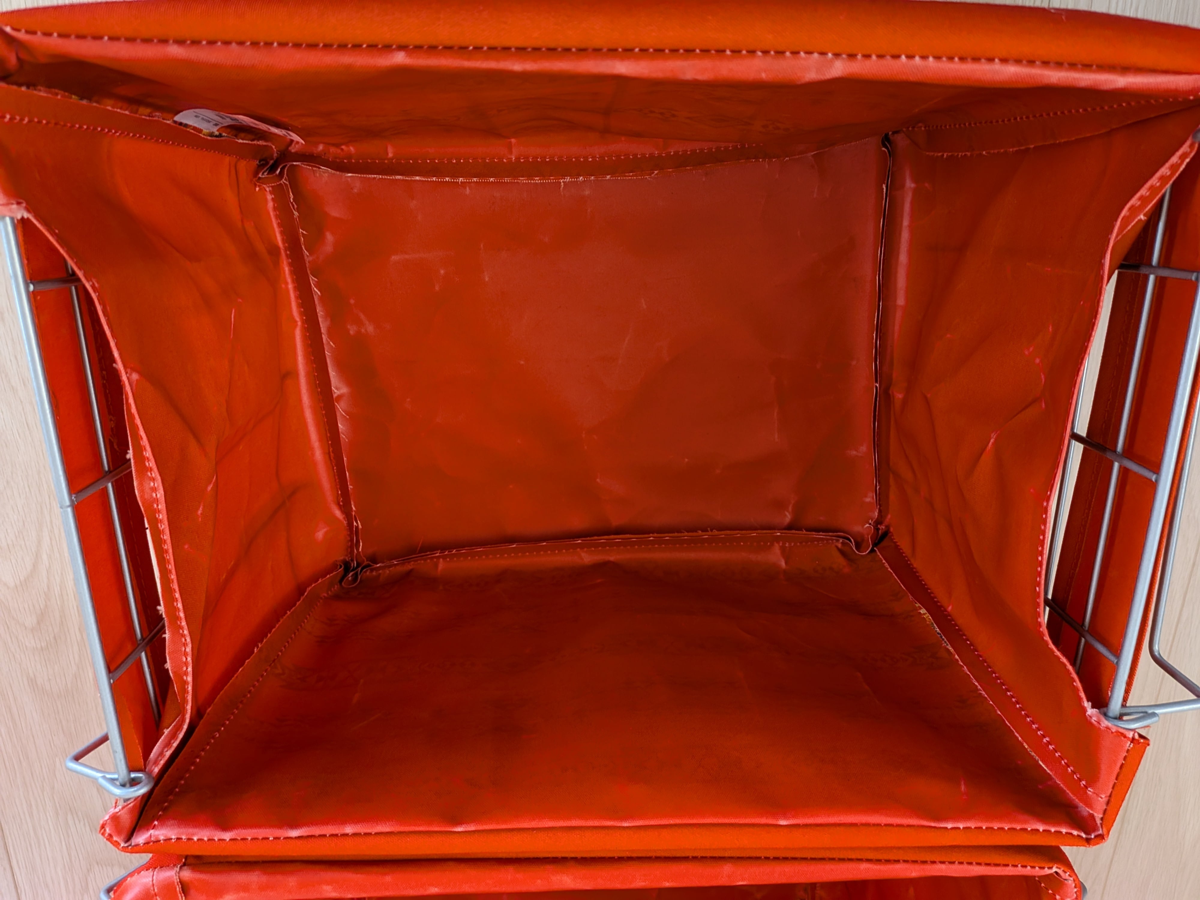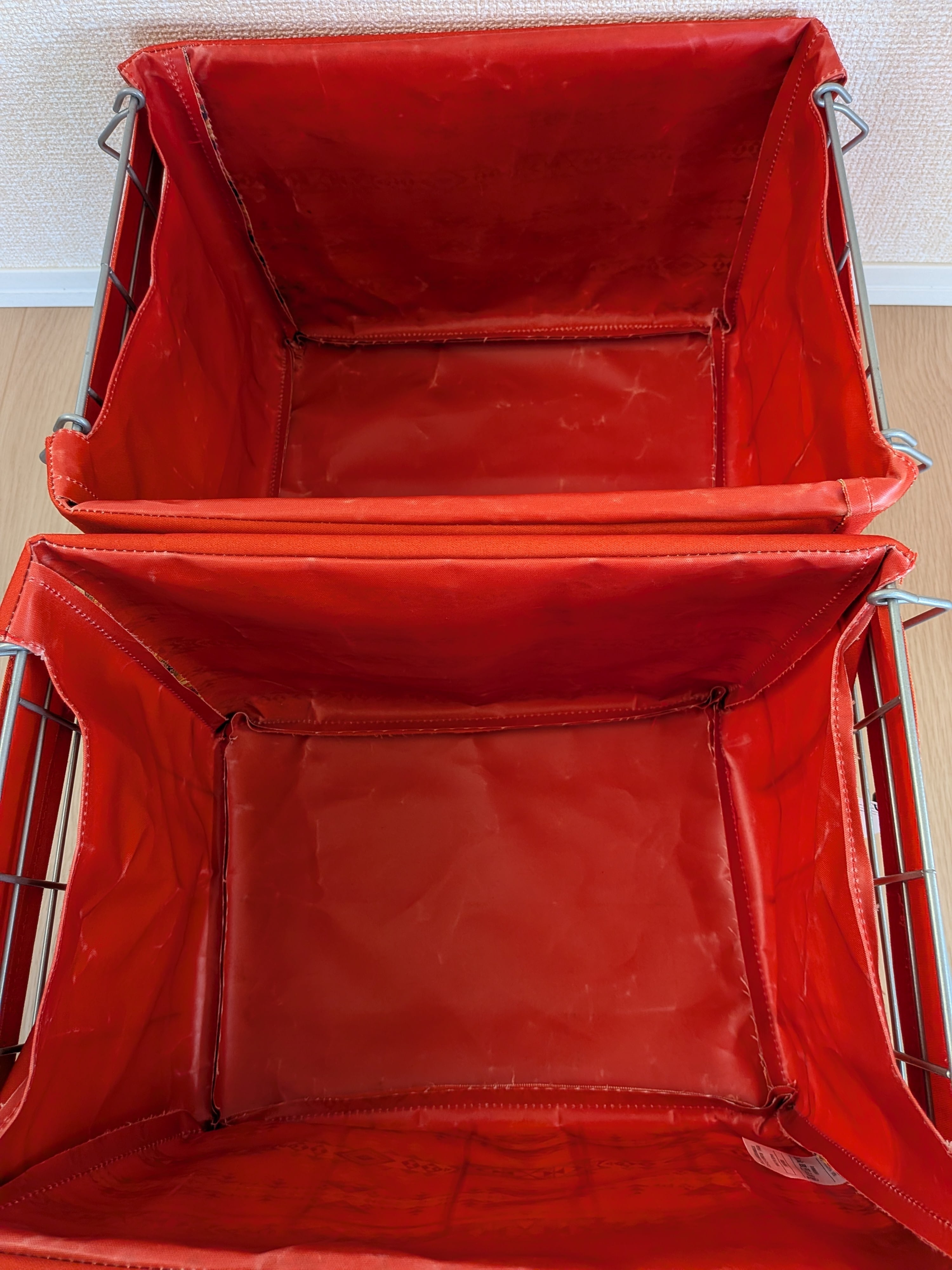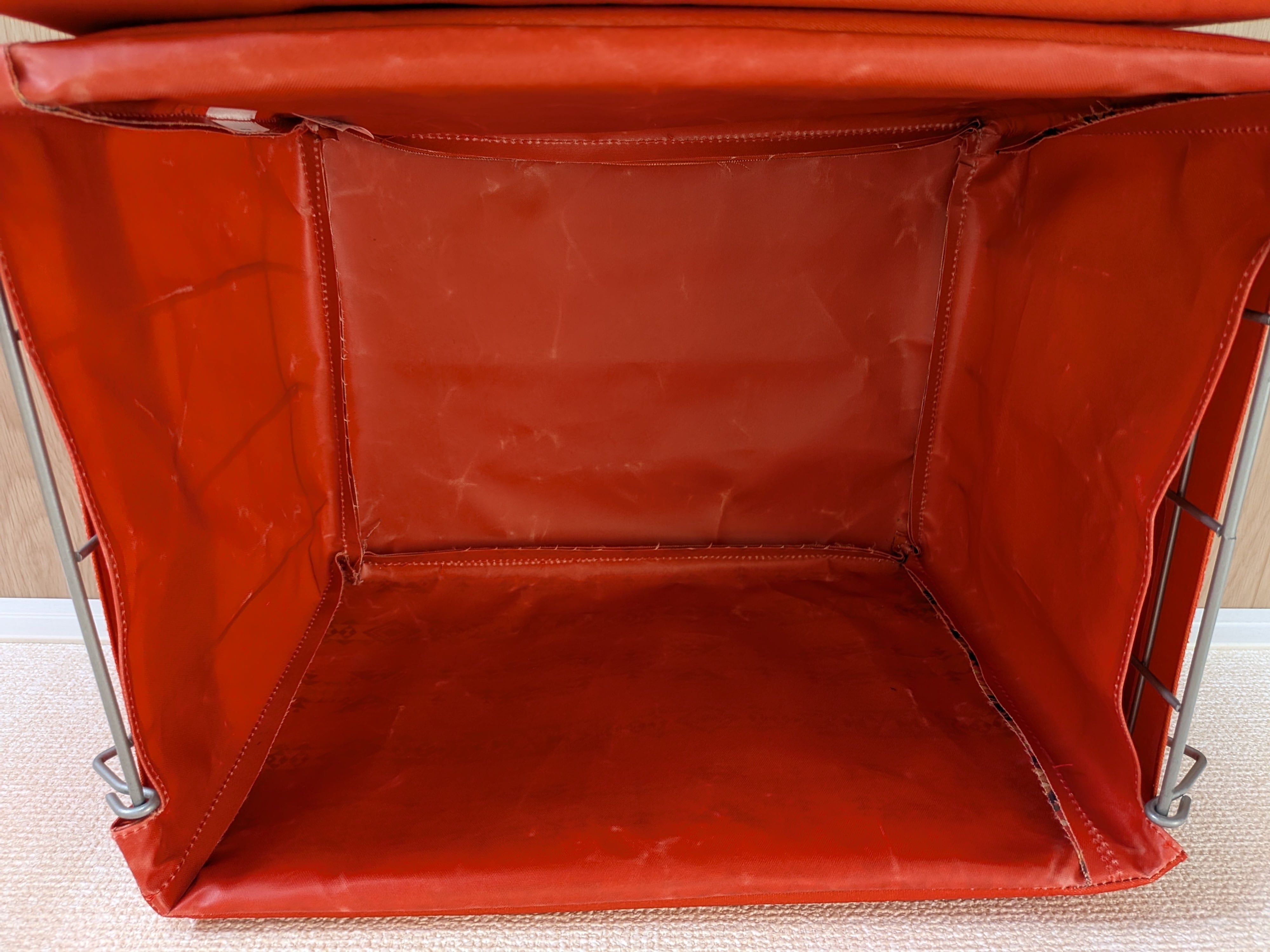 穴などは空いてないので機能的には問題なく、バスケットとカバーの外側のダメージは軽微ですが、カバーの内側はダメージ(傷やよれ)があるため、実物画像をよくご覧になってからご購入ください。