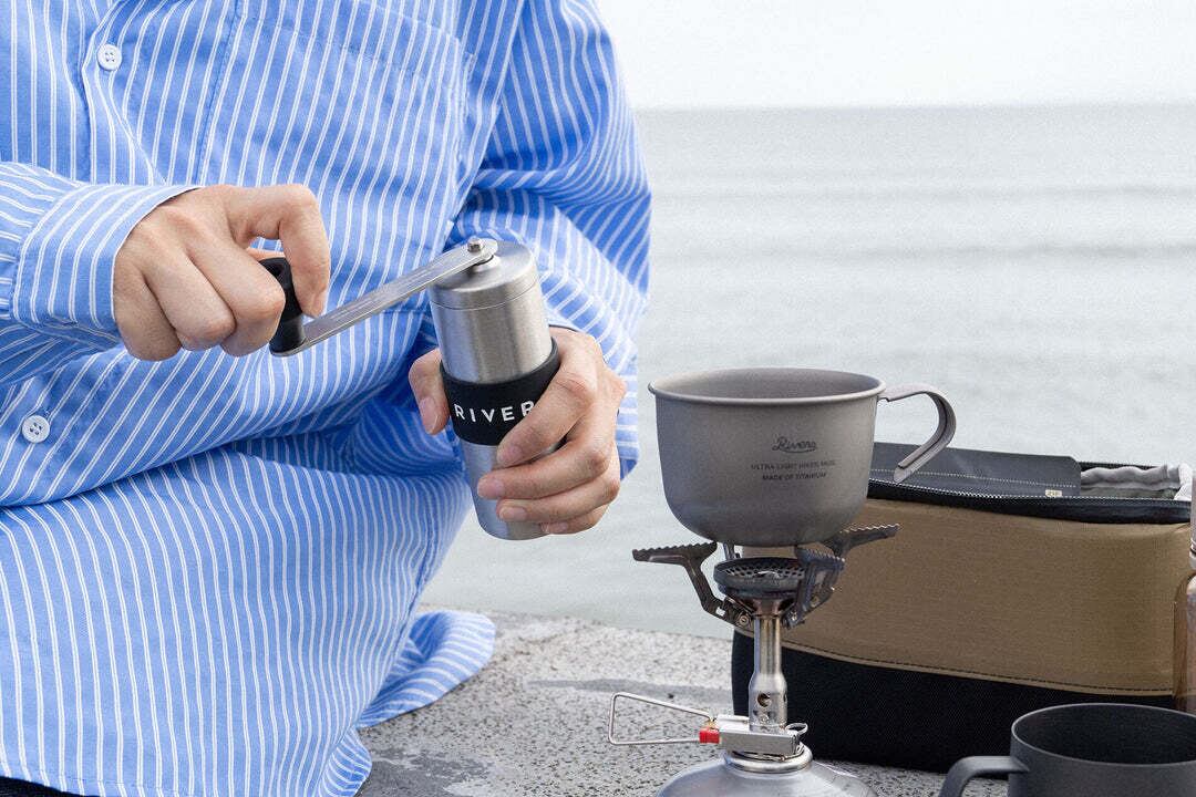 おいしいコーヒーを淹れるための絶対条件、それはコーヒーを淹れる直前に豆を挽くこと。グリットは、どこでも場所を選ばず、キャンプやハイキング、出張先でのコーヒーブレイクに携帯できるサイズです。