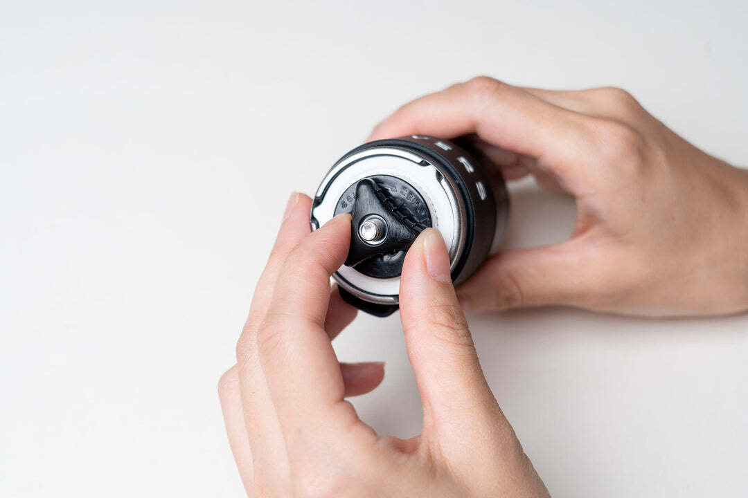 グリットのアイコンでもあるシリコーンバンドは、豆を挽く際に本体にホールドしやすく、ハンドルを外して収納できる機能的パーツ。携帯時、本体を傷つける心配もありません。