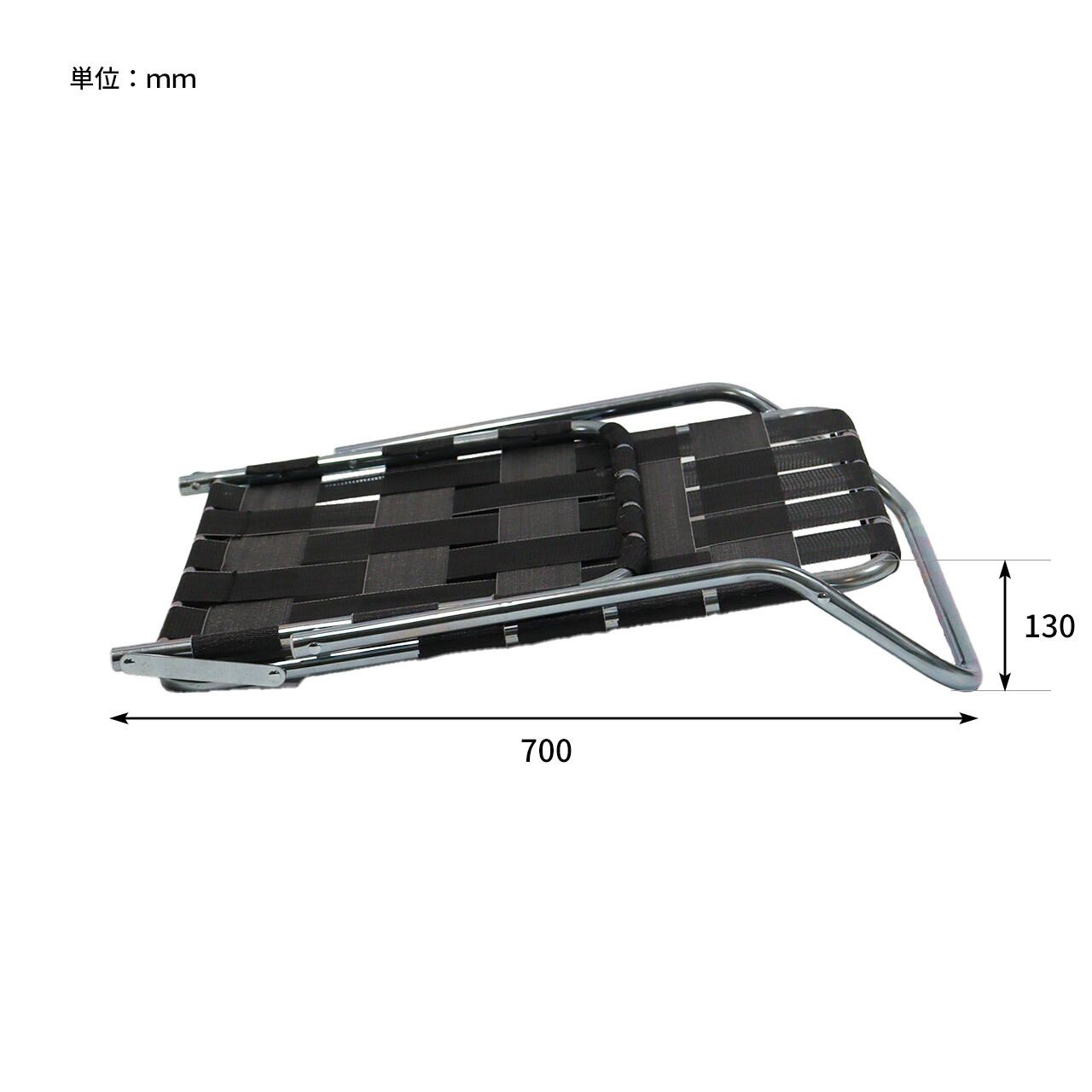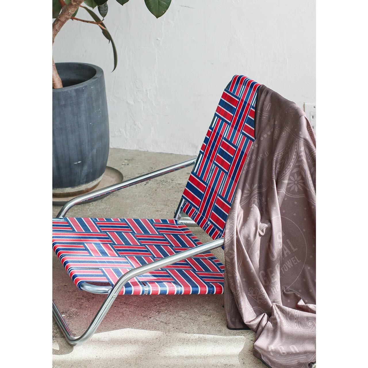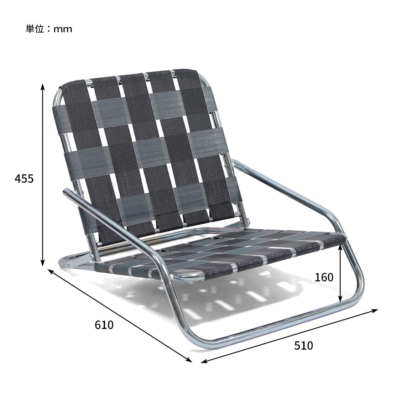 亜鉛メッキ仕上げのインダストリアル感漂うフレームに、レトロなテープを合わせた極ロー型のフォールディングチェア。