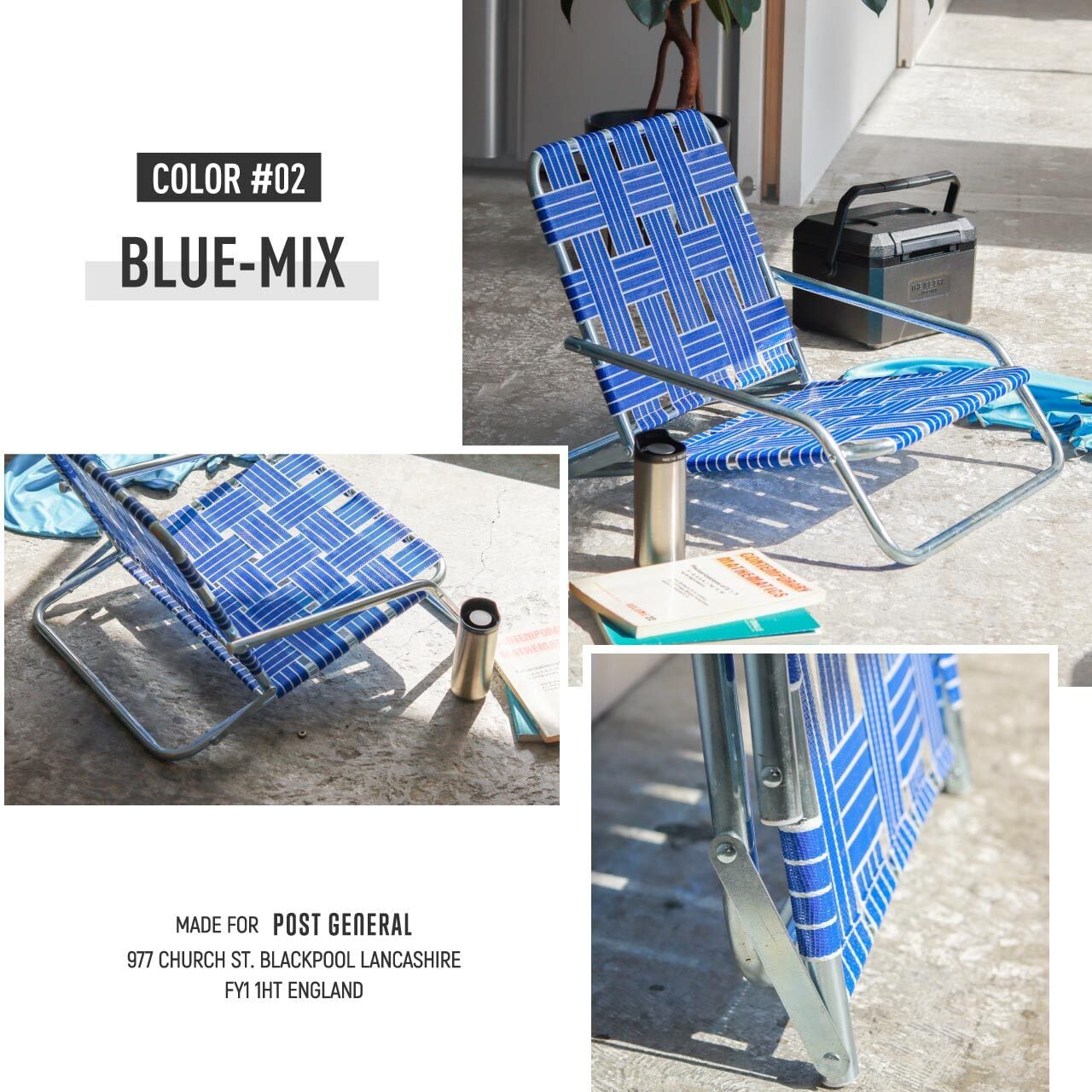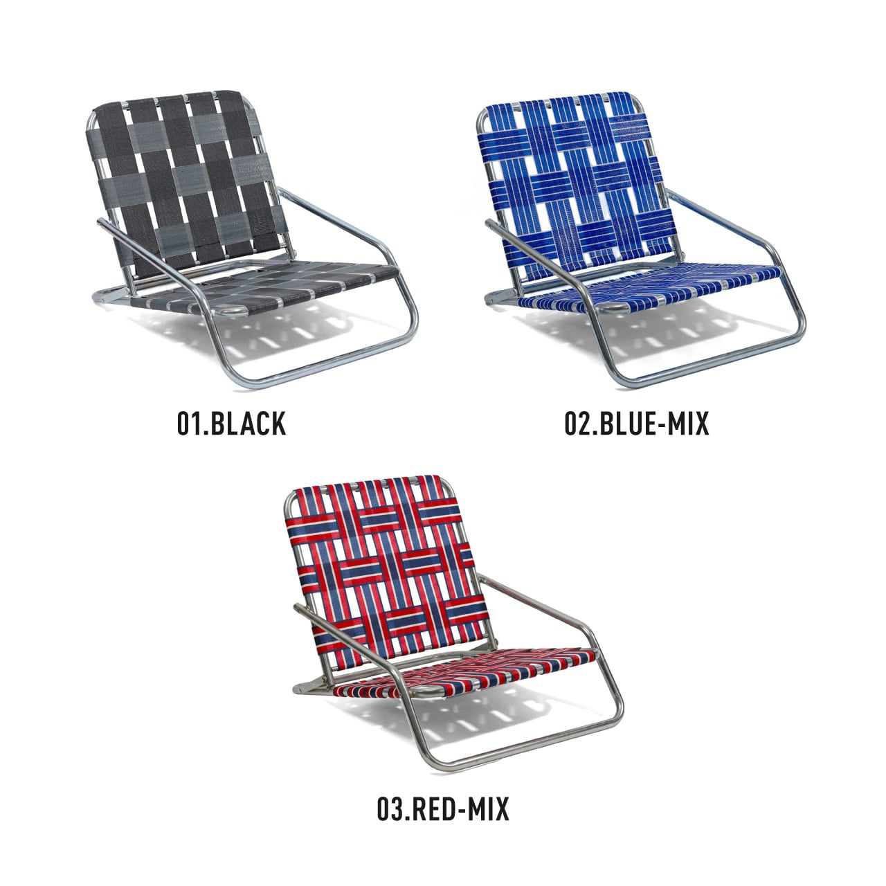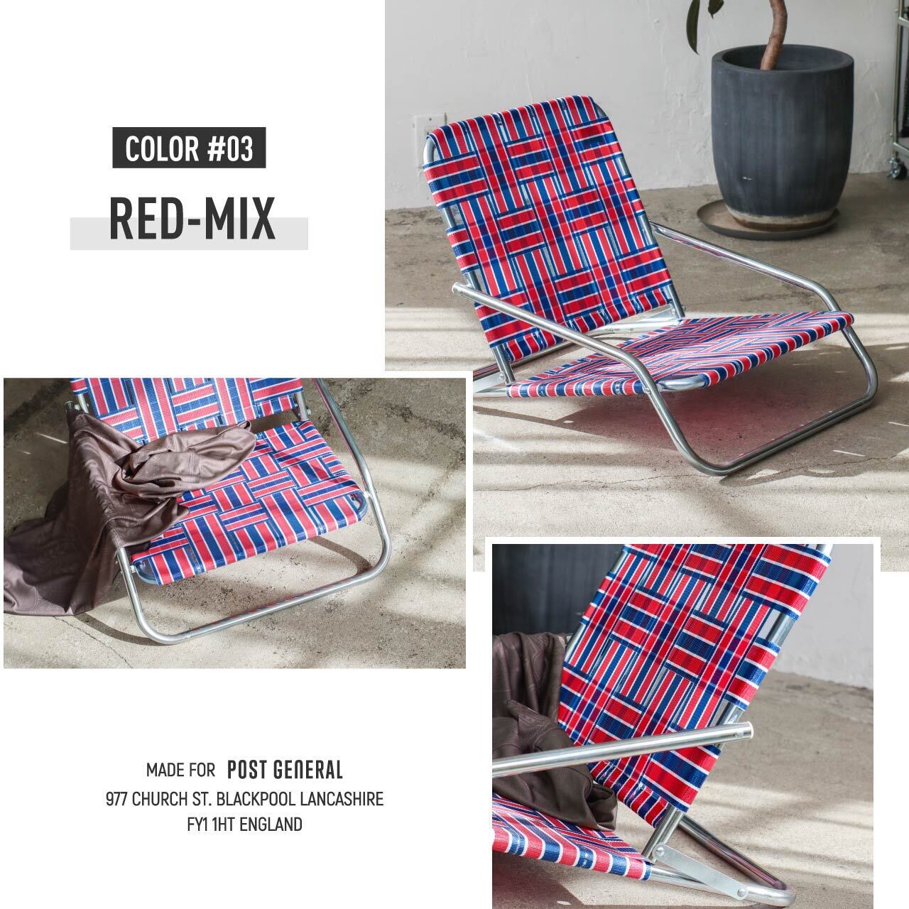 亜鉛メッキ仕上げのインダストリアル感漂うフレームに、レトロなテープを合わせた極ロー型のフォールディングチェア。