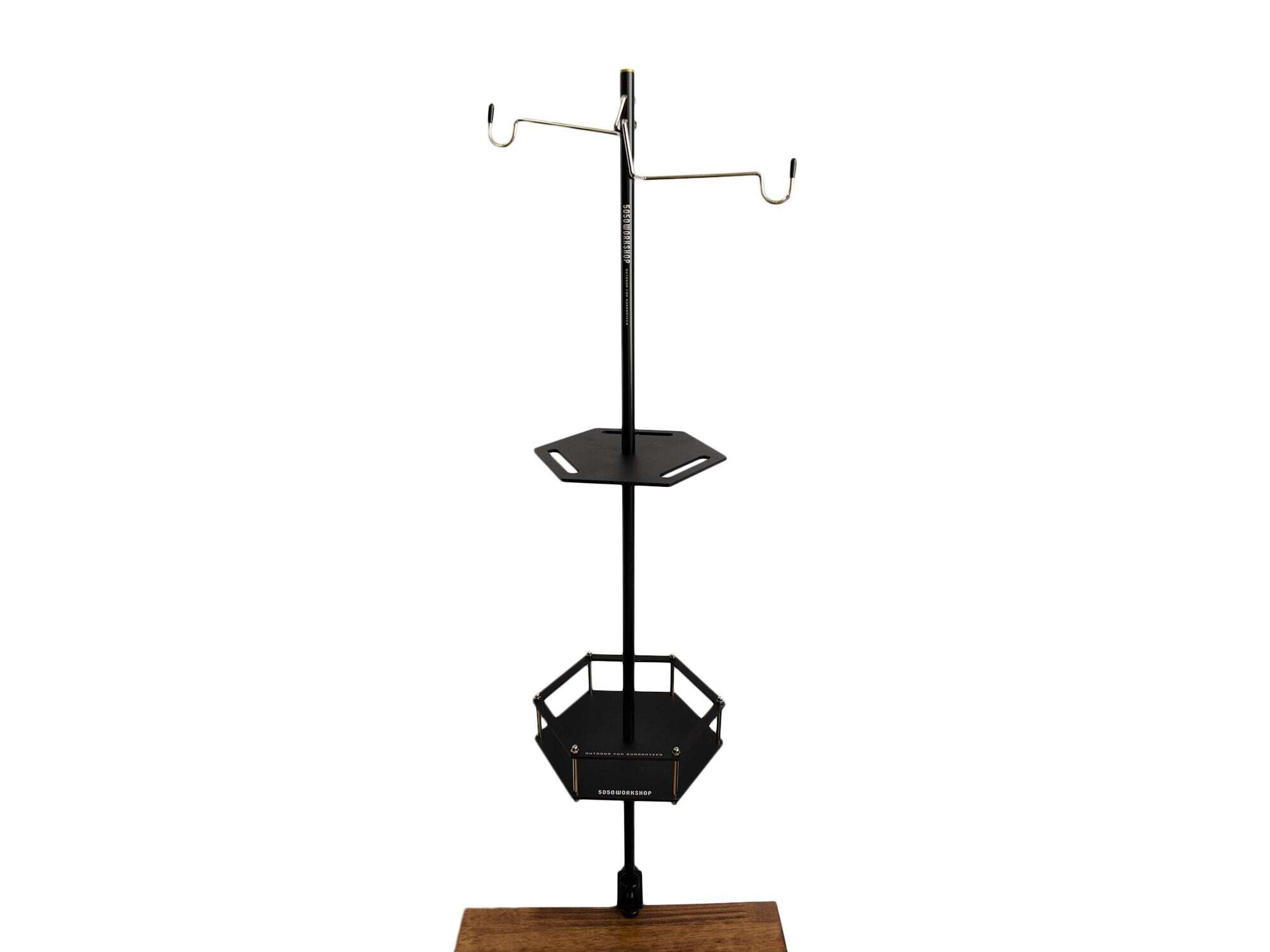 スタンドのジョイント部分にプレートを挟み、小物を置くことが可能。