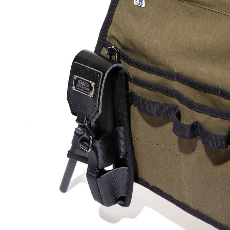 背面のホック付きテープで様々な鞄のループや、ポールに引っ掛けることが可能です。