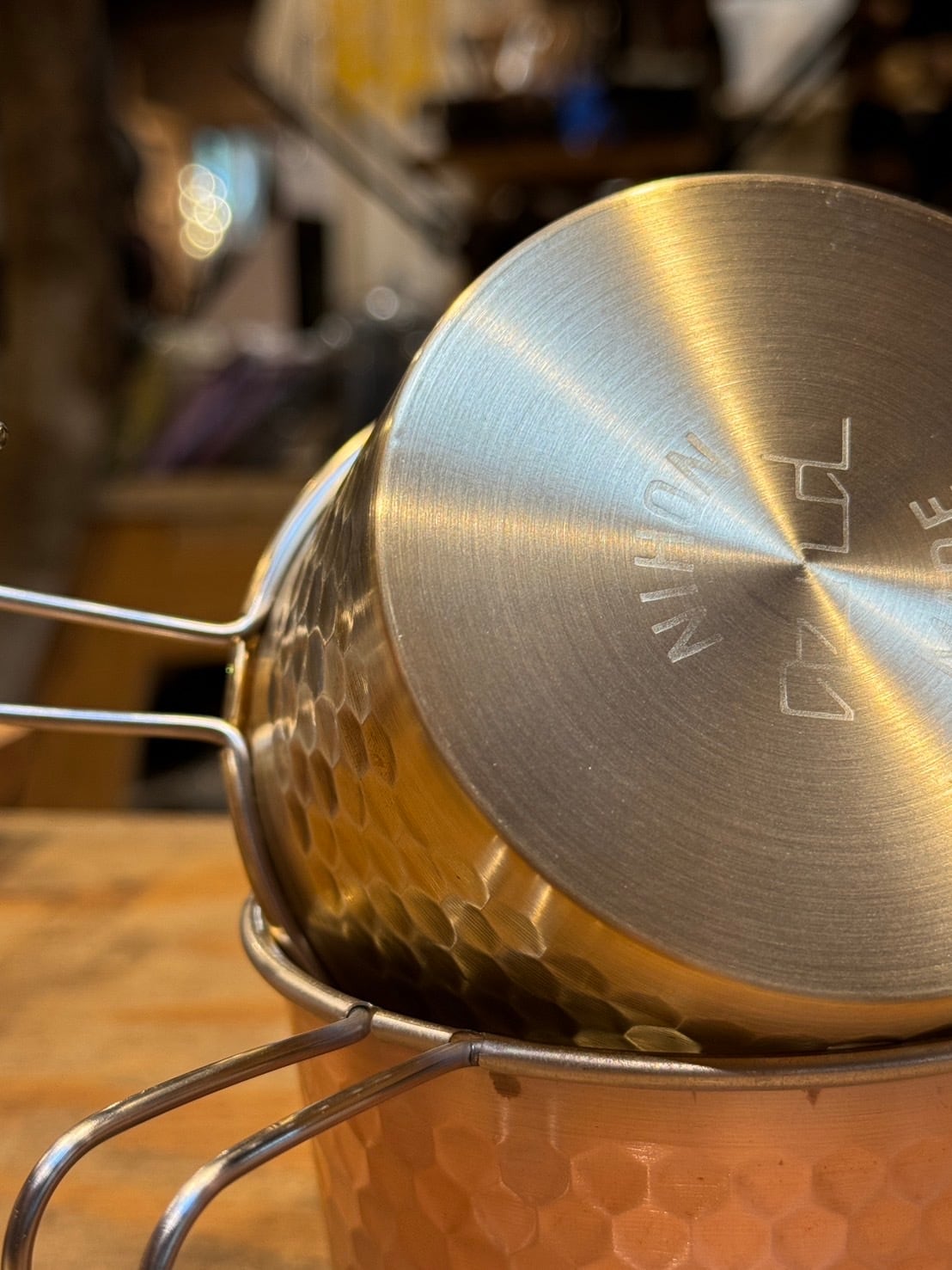 主な特徴は表面に施したハンマートーン(槌目)。使う素材によって槌目の出方が違います。